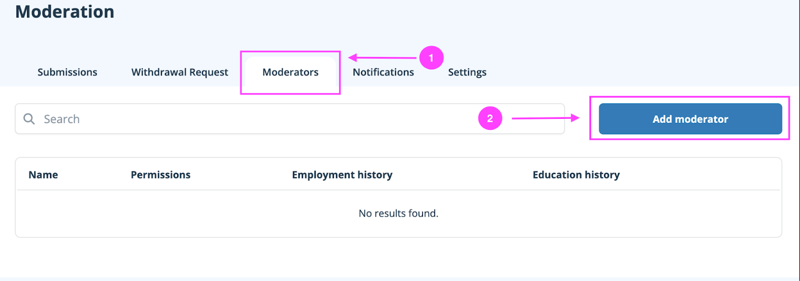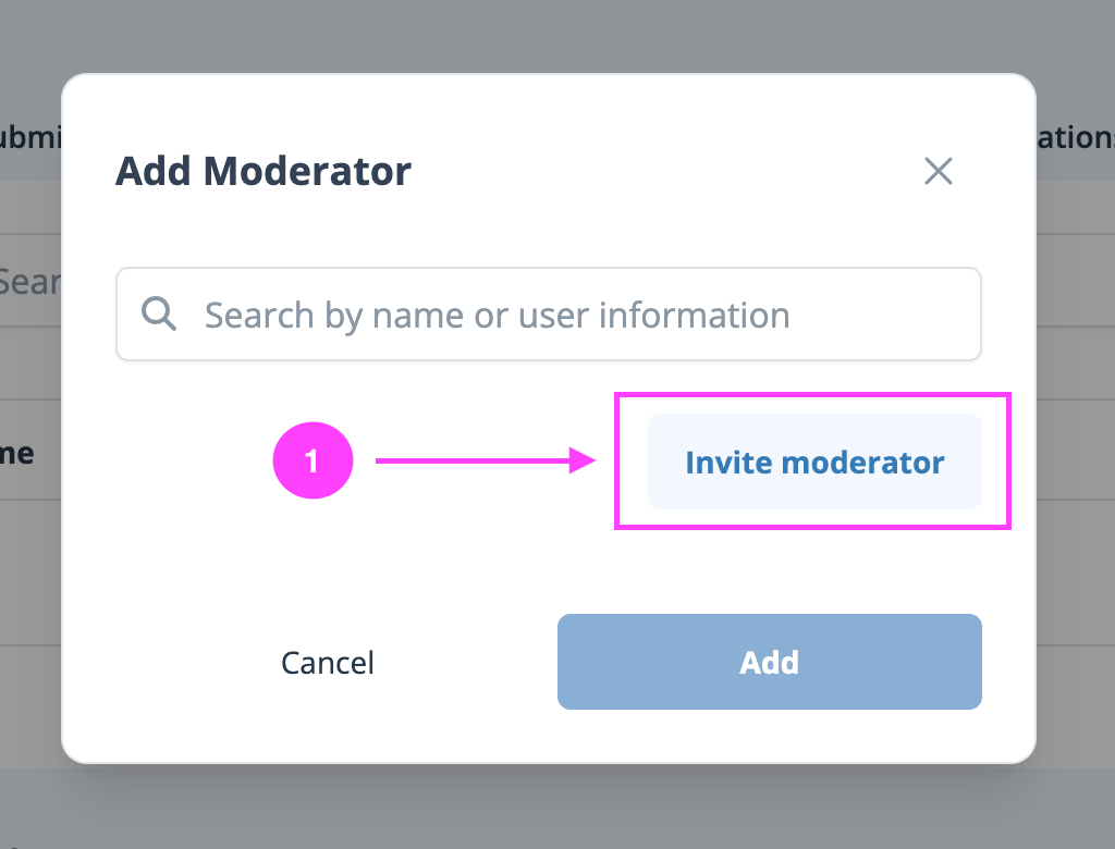 - To add a moderator, navigate to the ‘Moderators’ tab of your dashboard